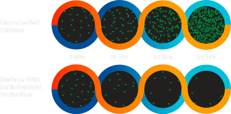 An unprotected surface not only harbors harmful bacteria which multiply exponentially over the course of the day. With Microban®-protected surfaces, bacterial growth is impeded, which makes cleaning that much easier and effortless.